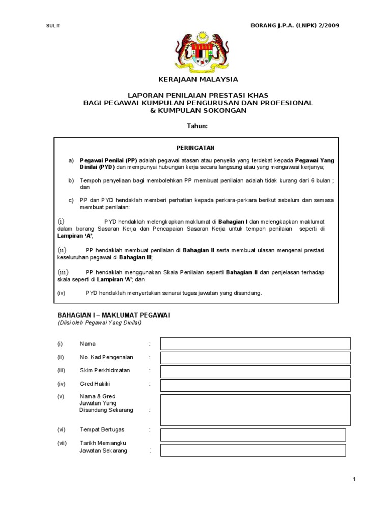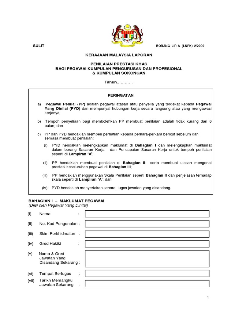 Kerajaan malaysia laporan penilaian prestasi khas sulit.