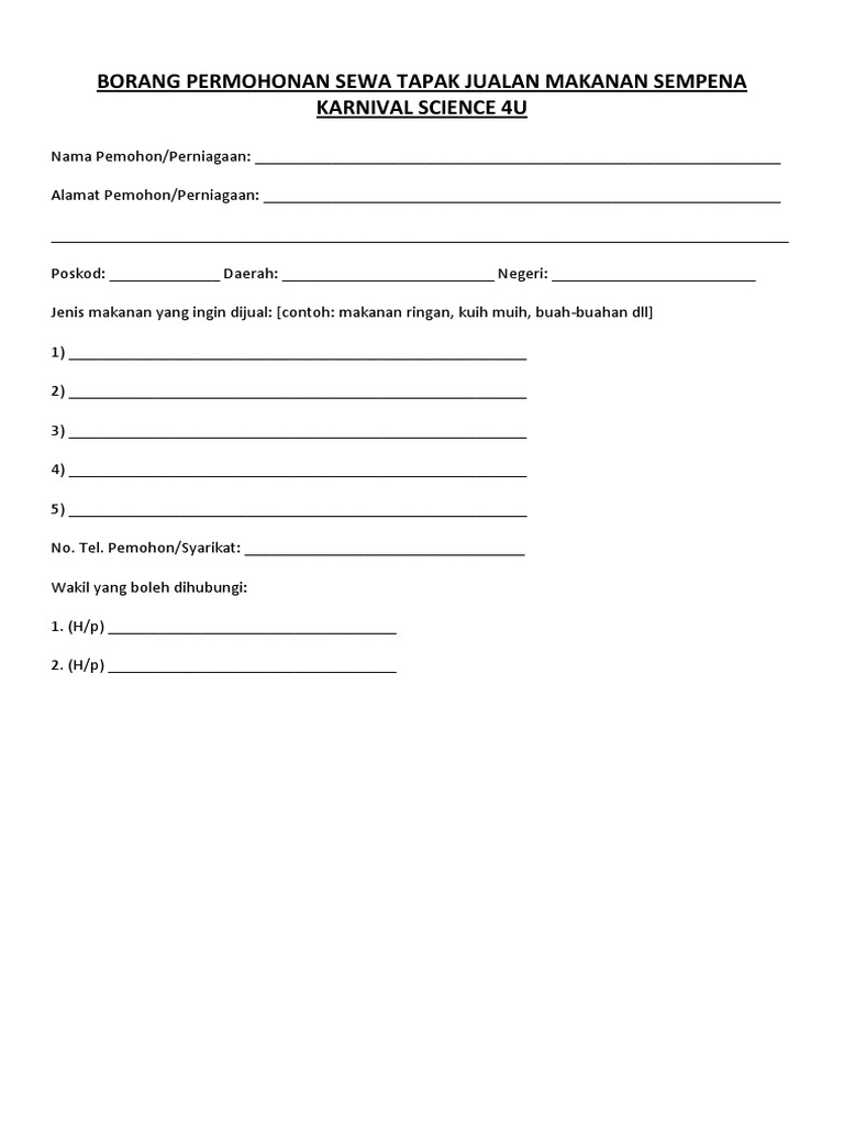 Contoh Borang Sewa Barang : 1 - Surat ini sebaiknya segera dibubuhkan tanda tangan saat ada prosesi penyerahan suatu barang dari satu pihak ke pihak lain.. Saat lapar anda butuh makan. Borang ini digunakan ketika seseorang ingin menjual barangnya kepada orang lain, ketika orang ingin perjanjian sewa kediaman adalah perjanjian sewa yang ditandatangani oleh tuan tanah dan. Jenis prasarana pendukung jumlah unit total luas (m 2 ) kepemilikan* kondisi** milik sendiri sewa/ pinjam/ker jasama teraw at tidak teraw at (1) (2) (3) (4) (5) (6) (7) (8) 1 gedung asrama mahasiswa 11 7.138 v v 2 gedung ukm 1 1.215 v v. Berikut ini adalah contoh surat perjanjian sewa dump truck. Obyek, barang, hak atau kuasa, apapun itu di dalam surat perjanjian haruslah disebutkan secara jelas dan terperinci agar tidak membuat kesalahan persepsi.