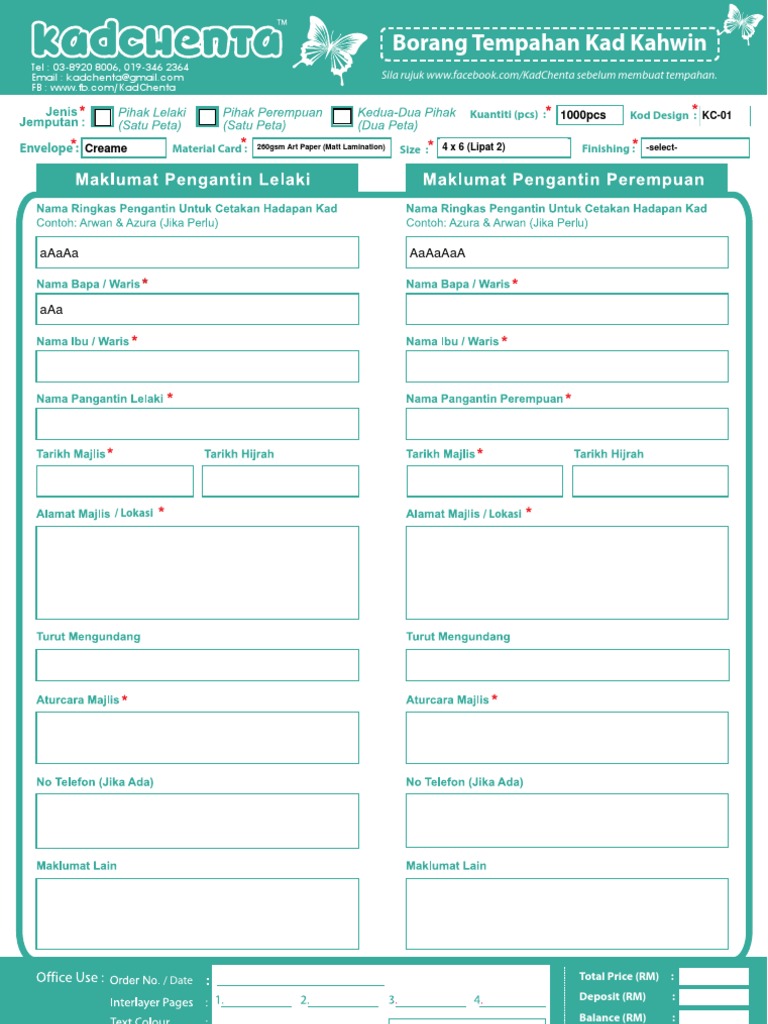 Kerana itu pihak cetak borong turut menyediakan sekali sampul untuk setiap keping kad kahwin yang di tempah. Mesti budget mesti canggih mesti cun!!! Tempahan yang dikehendaki dan kuantiti. Revolusi kad kahwin paling jimat di malaysia. Tempahan kad kahwin, cheras, kuala lumpur. Wooden stand sahaja welcome board sahaja promosi welcome board + stand. Apa yang anda dapat dengan pakej kad kahwin kami? Tempahan hanya whatappske salah satu hp di bawah. Inginkan rekaan kad kahwin yang ekslusif, unik dan menjimatkan. Pening kepala fikirkan design kad kahwin untuk majlis anda nanti? Beli tema pilihan, isi butiran majlis dan kad kahwin digital (kkd) anda siap untuk digunakan! .mencari dan membuat tempahan kad kahwin di kedai banner printing yang ada menyediakan servis membuat kad jemputan perkahwinan. Sepasang rm55, tempahan 10 biji rm150.