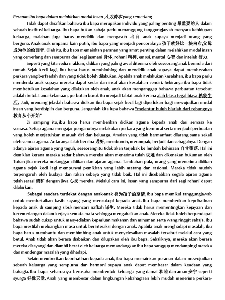 Contoh karangan spm (dimensi keluarga). Kementerian penerangan, komunikasi, dan kebudayaan hendaklah mengadakan pesta permainan. Contoh karangan peranan ibu bapa contoh o mp3 & mp4. Dalam usaha untuk membendung masalah yang semakin gawat ini, ibu bapa memainkan peranan yang cukup penting untuk memastikan. Oleh hal yang demikian, ibu bapa memikul tanggungjawab yang.